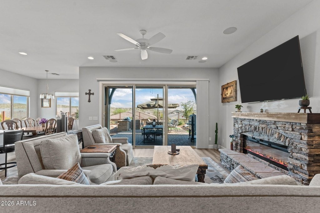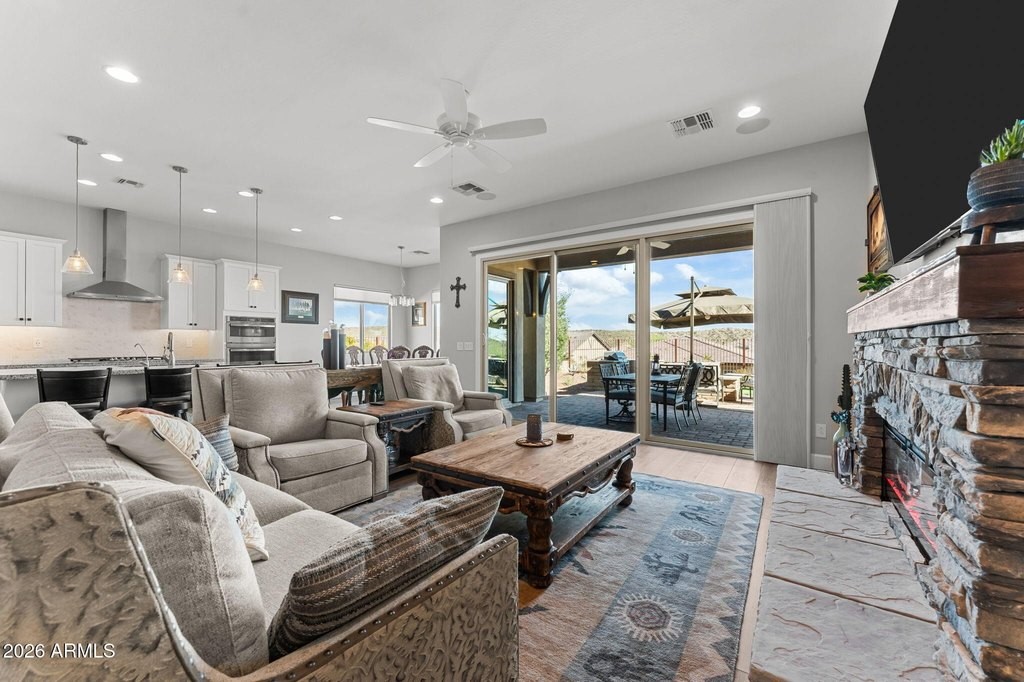 Exterior Fireplace, Living Room